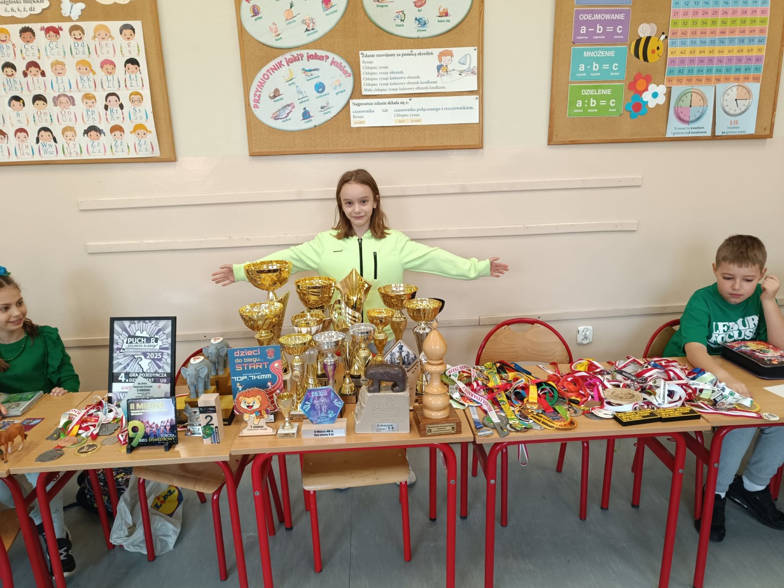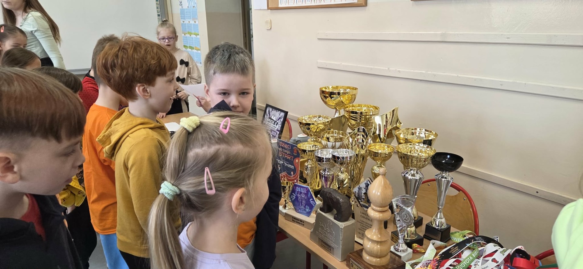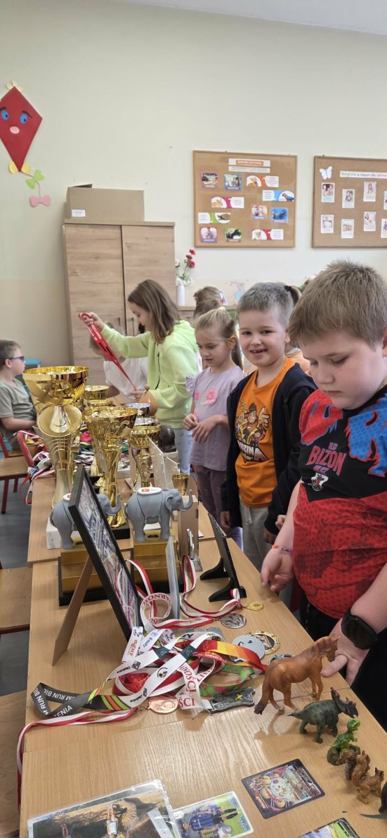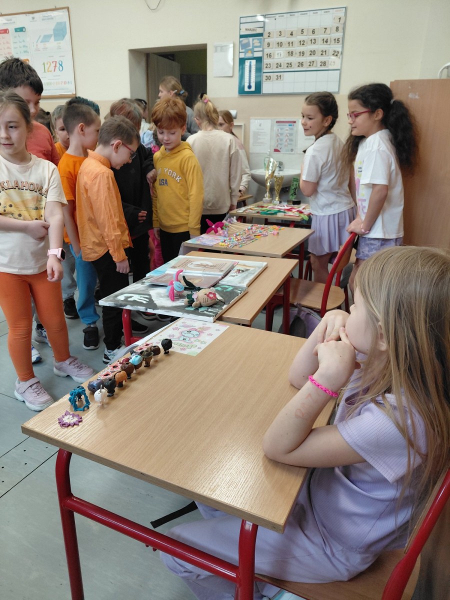 W salach lekcyjnych uczniowie przygotowali specjalne stanowiska, na których prezentowali swoje dyplomy, medale, kolekcje kart wybitnych sportowców, piękne prace plastyczne, kolekcje minerałów, origami i wiele innych dowodów, które świadczą o różnorodnych talentach naszych uczniów.