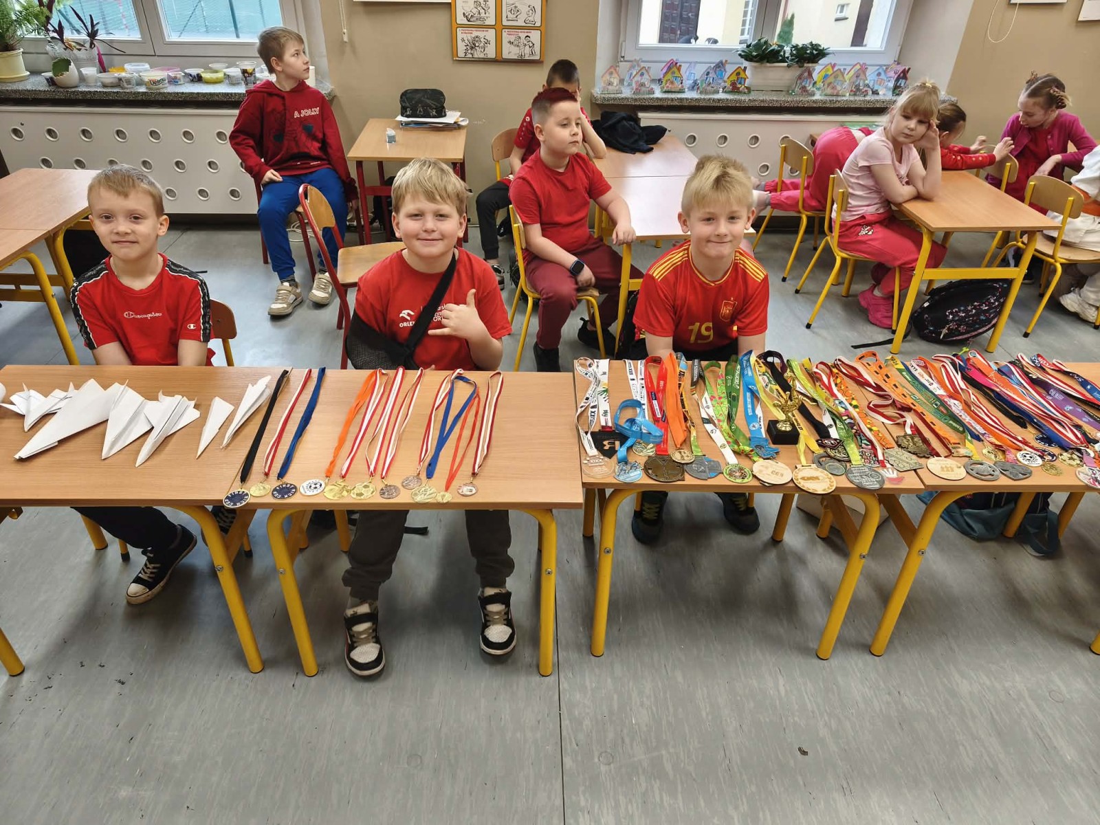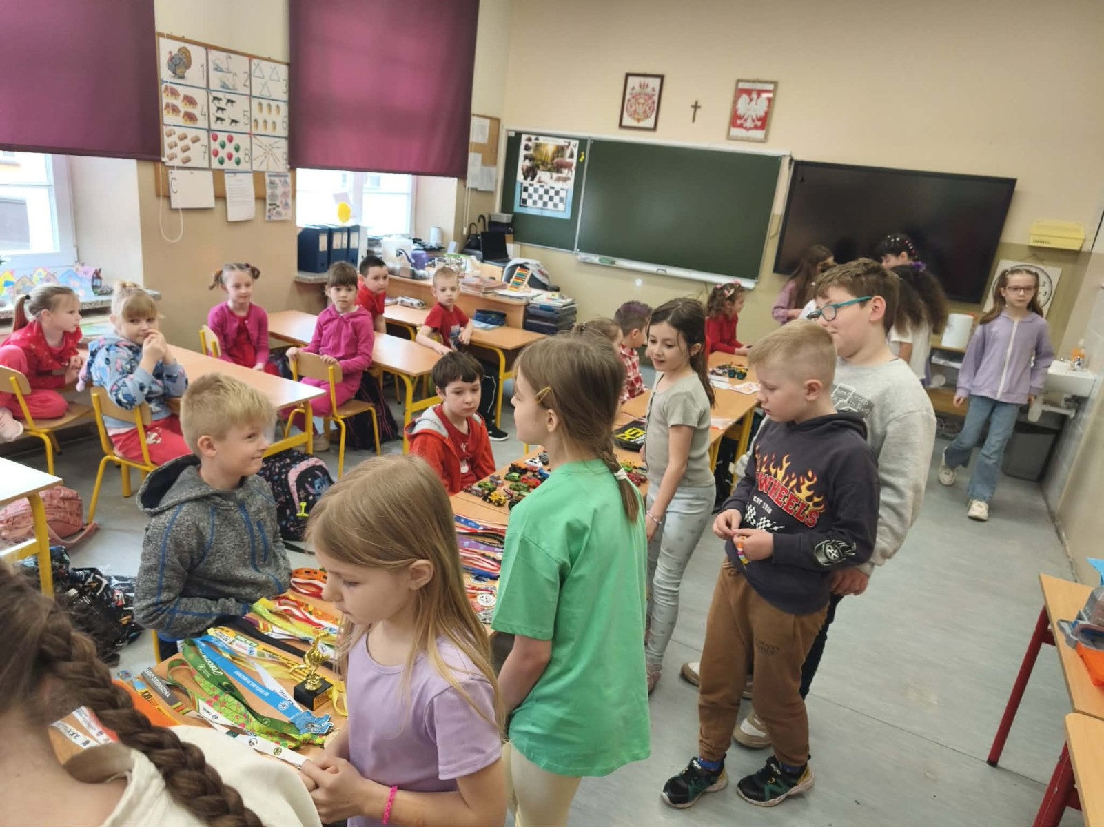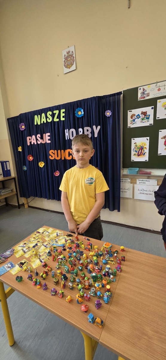 W salach lekcyjnych uczniowie przygotowali specjalne stanowiska, na których prezentowali swoje dyplomy, medale, kolekcje kart wybitnych sportowców, piękne prace plastyczne, kolekcje minerałów, origami i wiele innych dowodów, które świadczą o różnorodnych talentach naszych uczniów.