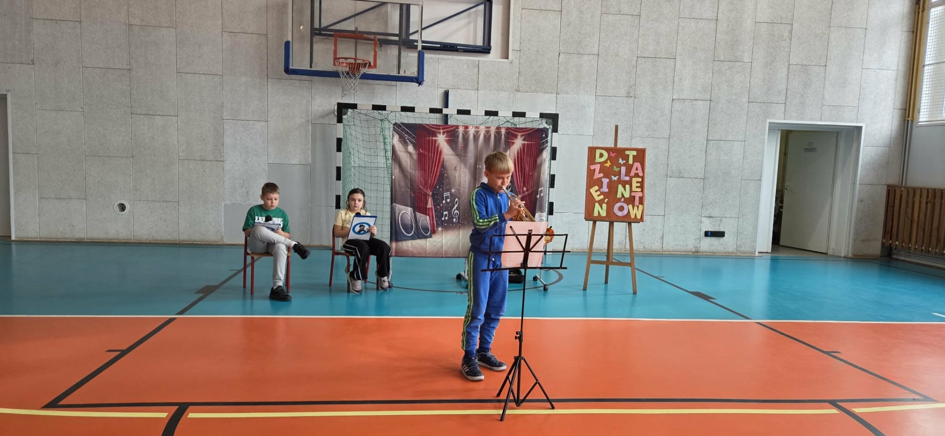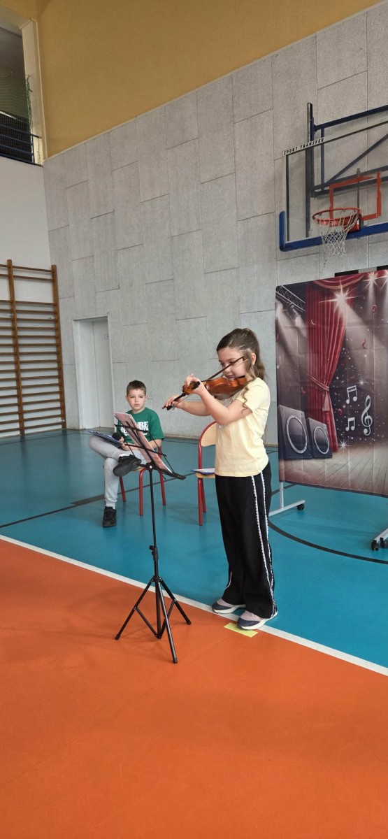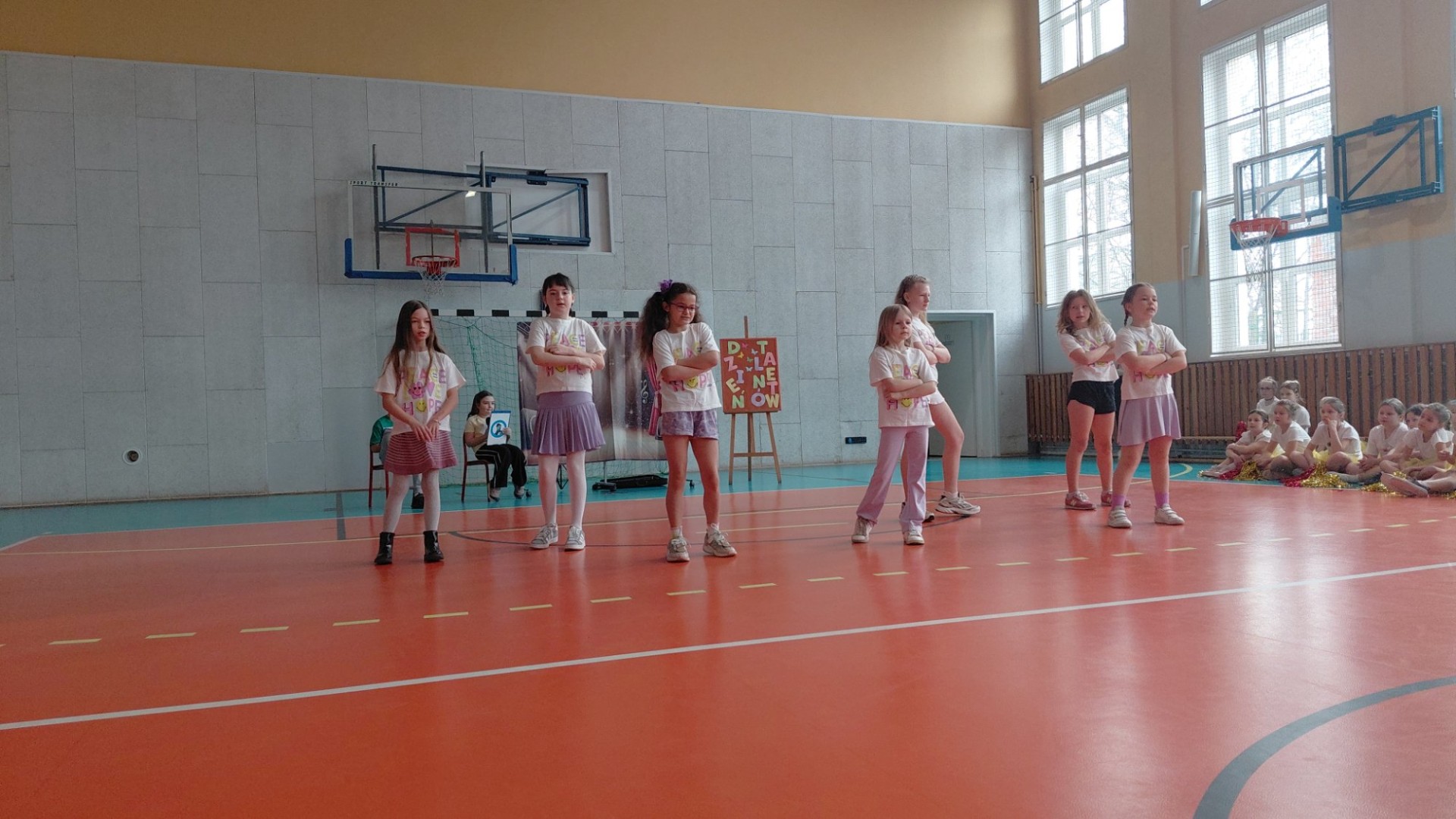 Na sali gimnastycznej podziwialiśmy różnorodne występy – śpiew, taniec, gimnastykę artystyczną, grę na instrumentach (klarnet, skrzypce, trąbka), a także pokazy układania kostki Rubika, które wzbudziły ogromny zachwyt publiczności.