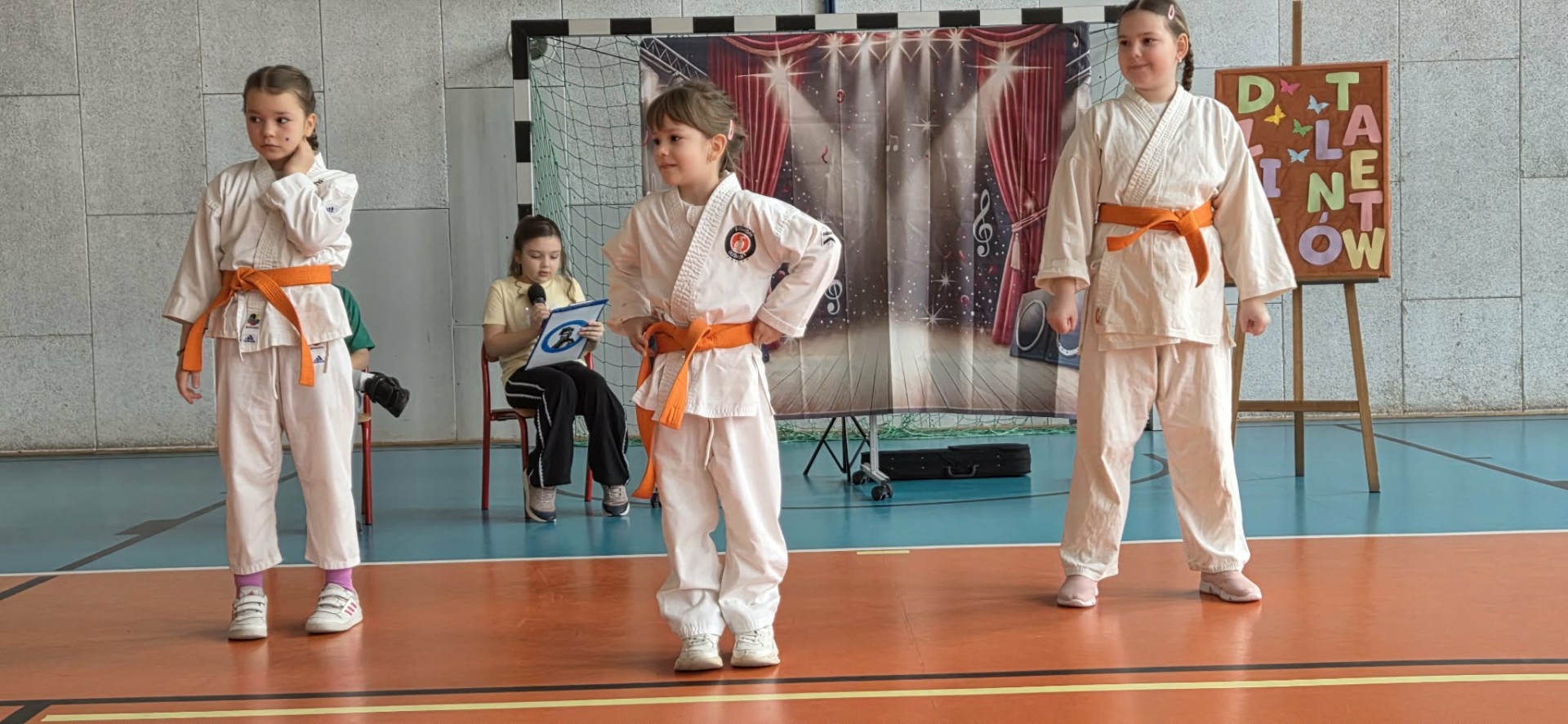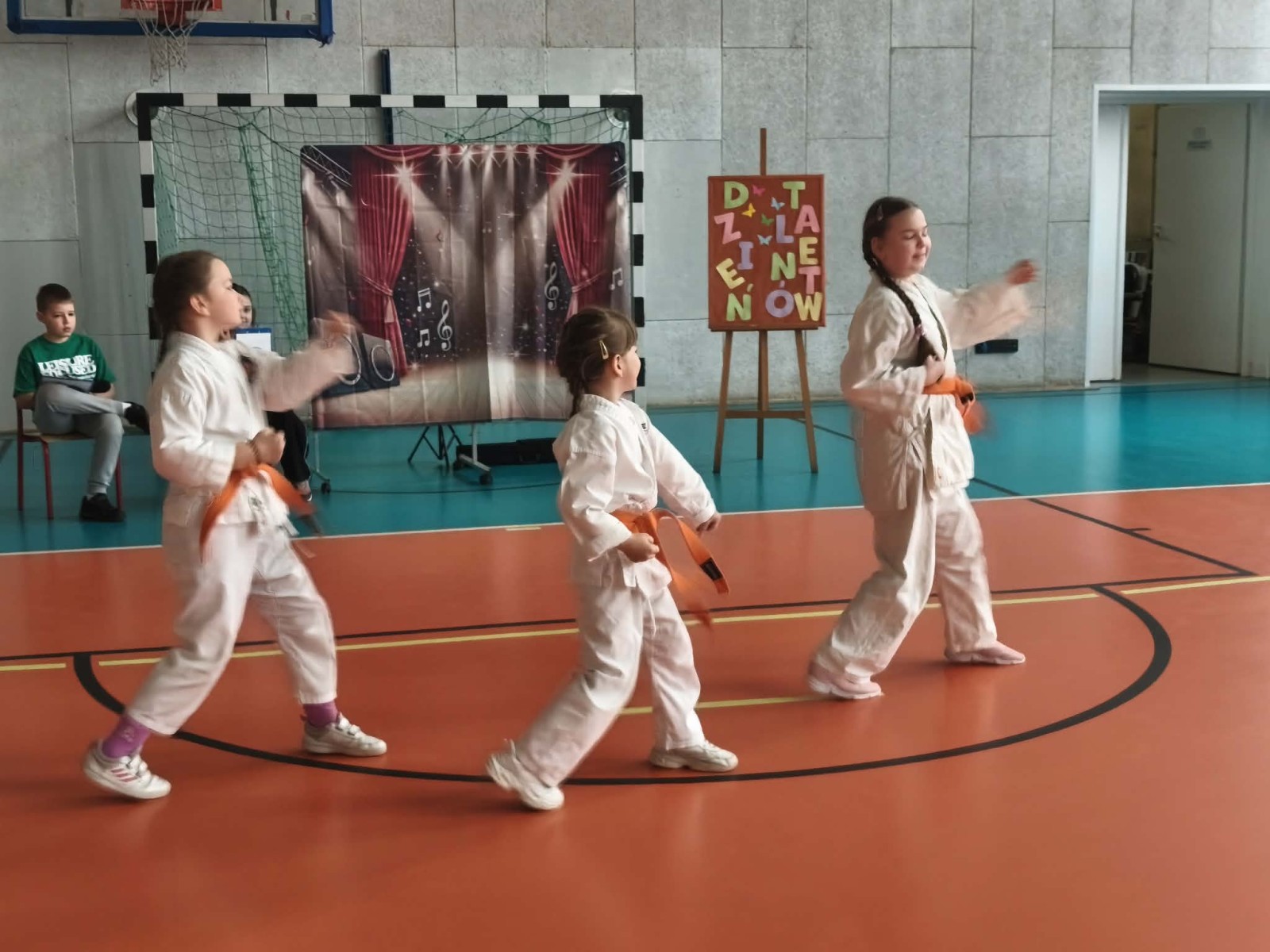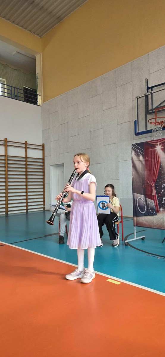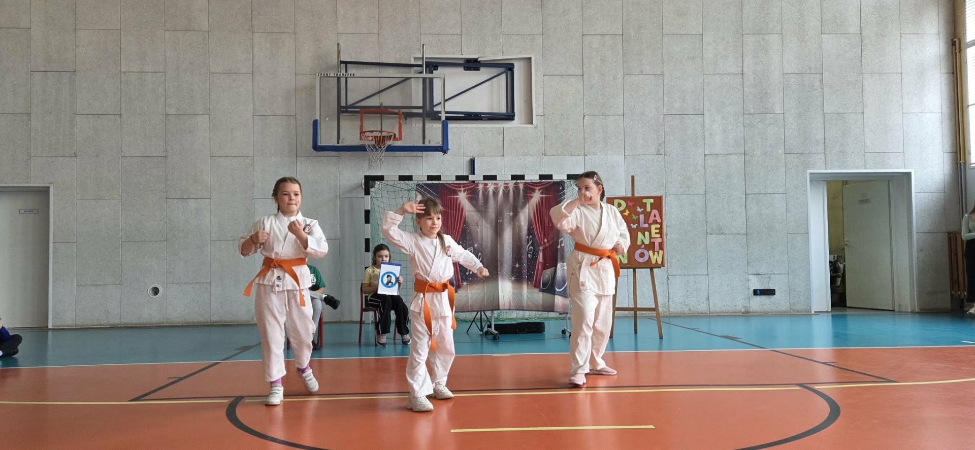 Na sali gimnastycznej podziwialiśmy różnorodne występy – śpiew, taniec, gimnastykę artystyczną, grę na instrumentach (klarnet, skrzypce, trąbka), a także pokazy układania kostki Rubika, które wzbudziły ogromny zachwyt publiczności.