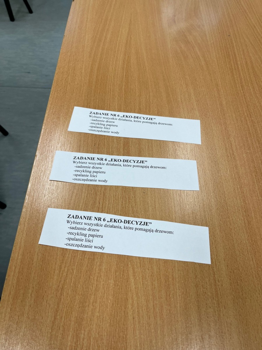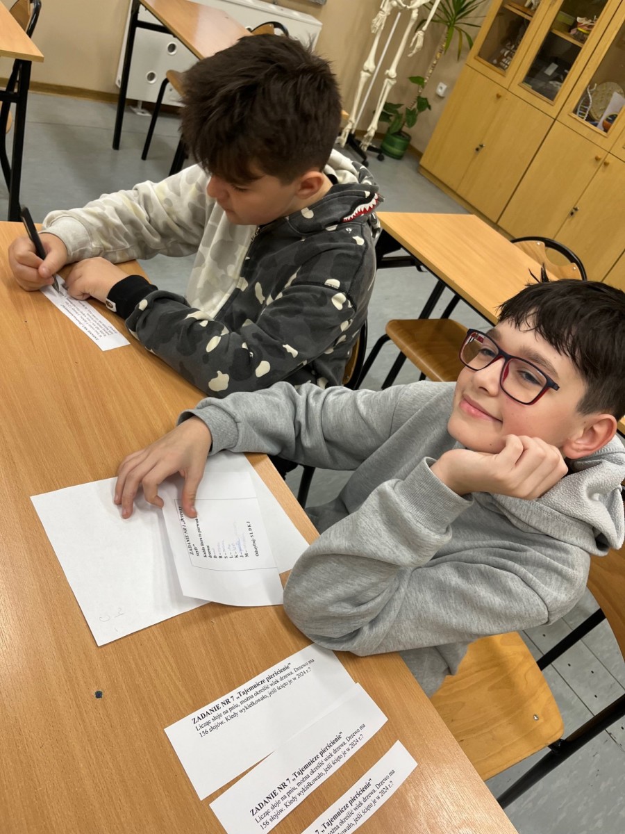 Podczas zajęć z biologii uczniowie wzięli udział w „Drzewnym escape roomie”, który pozwolił im w zabawny i angażujący sposób poszerzyć wiedzę o znaczeniu drzew w przyrodzie. Wykonując różnorodne zadania i rozwiązując zagadki przyrodnicze, dzieci odkrywały tajemnice lasu, poznawały budowę drzewa oraz jego rolę w ekosystemie.