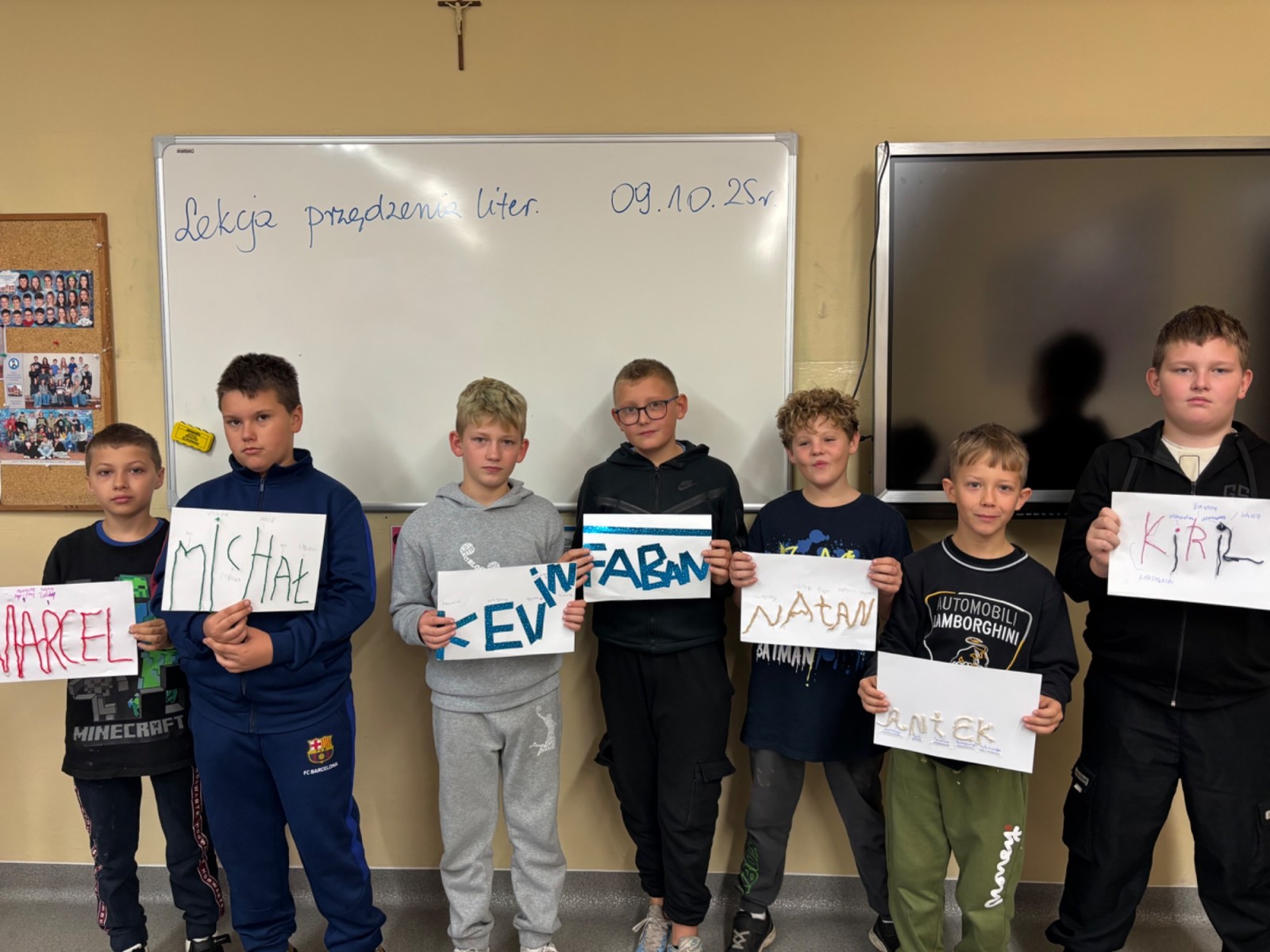 15 Października 2025"Akademia pana Kleksa" Jana Brzechwy to jedna z ulubionych lektur uczniów. Przy jej omawianiu uczniowie klasy 4b choć trochę mogli przenieść się do tej fantastycznej szkoły. Za swoją aktywność i prawidłowe odpowiedzi otrzymywali kolorowe piegi. Rysowali i opisywali Ambrożego Kleksa, opowiadali najciekawsze przygody bohaterów i zajęcia odbywające się w szkole. Mieli nawet lekcję przędzenia liter. Każdy musiał "utkać" swoje imię i napisać cechy na daną literkę. Takie zajęcia przysporzyły uczniom wiele radości.