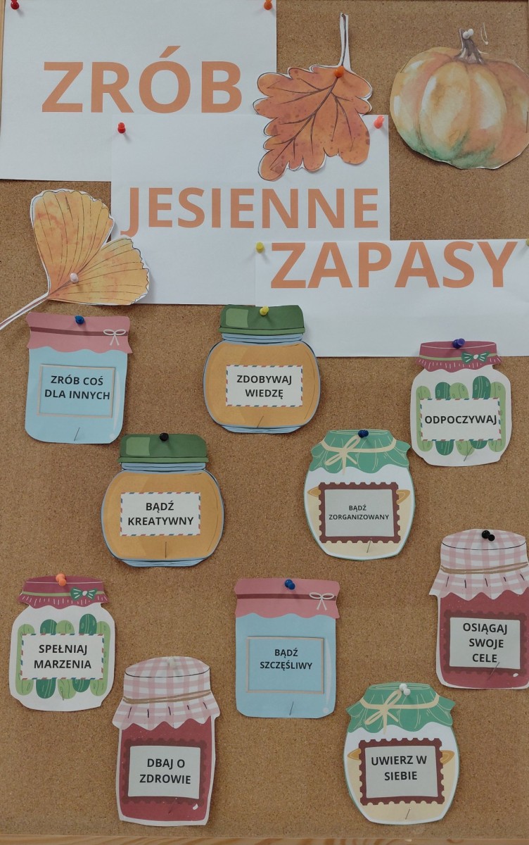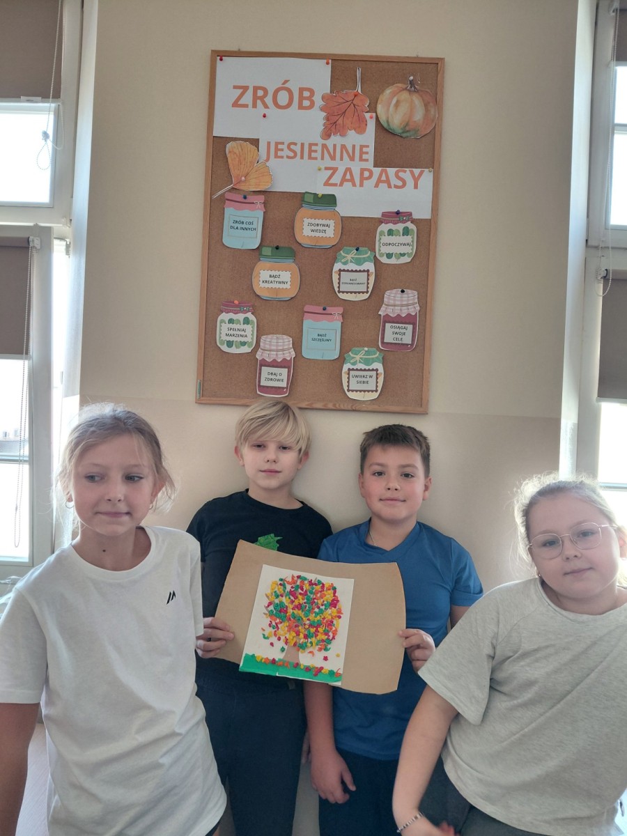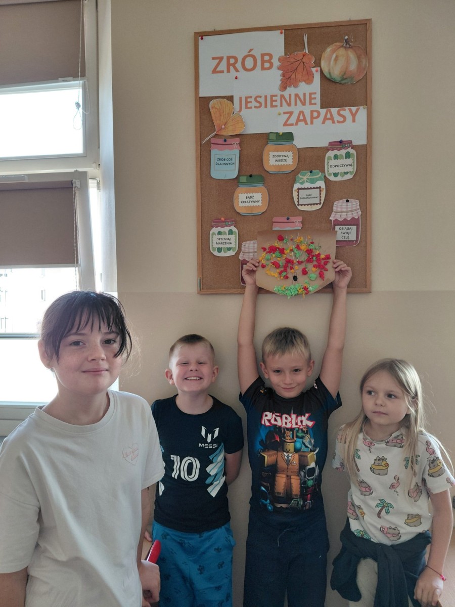 Kolejnym punktem było stworzenie niezwykłej ozdoby nawiązującej do jesiennych przetworów. Miała ona przypominać o ważnych wartościach w życiu – takich jak zdrowie, odpoczynek, szczęście, czy dobre uczynki. Dzięki temu uczniowie mogli połączyć twórczość z refleksją nad tym, co naprawdę istotne.