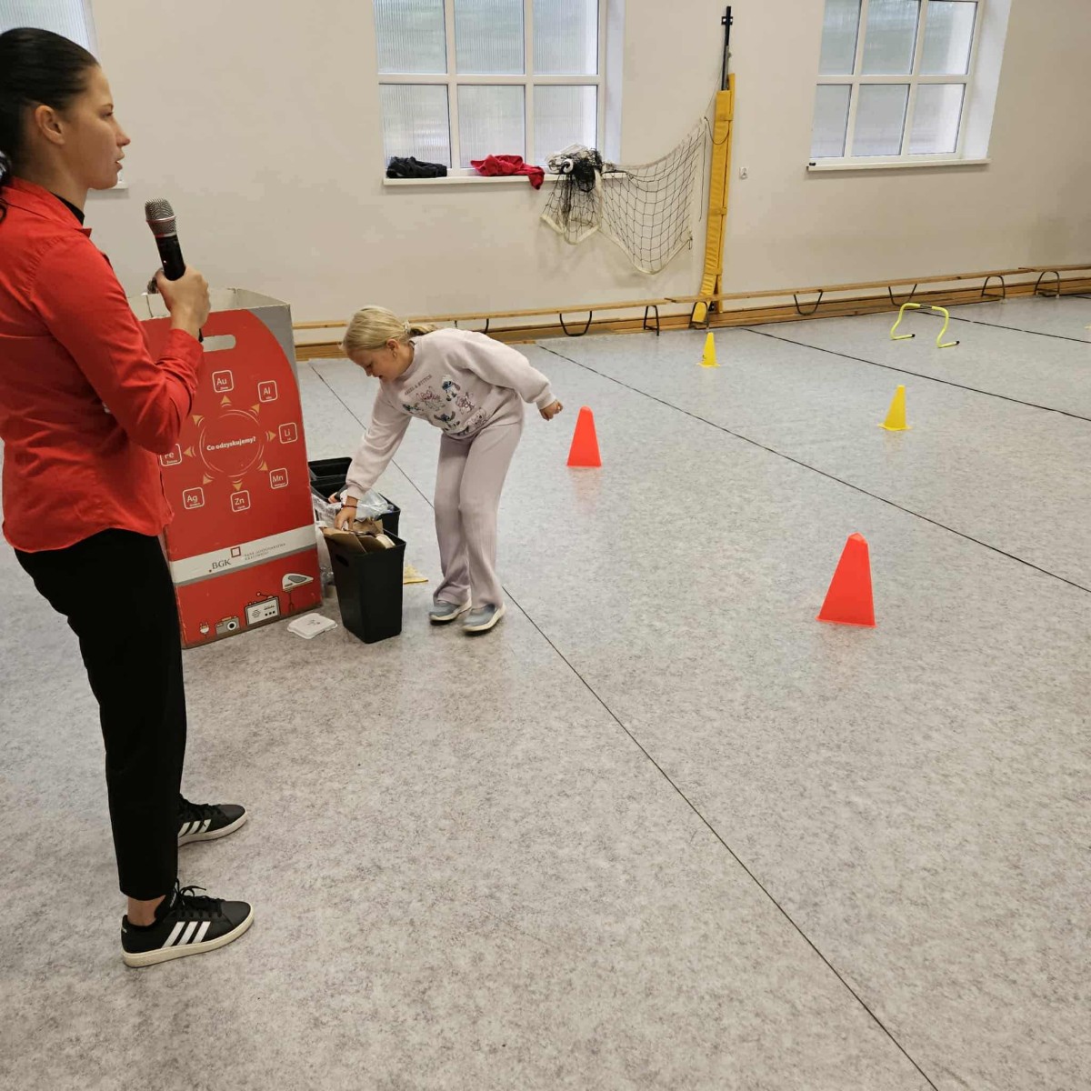 Zadaniem drużyny było jak najszybsze pokonanie toru przeszkód, przy jednoczesnym prawidłowym posegregowaniu odpadów. Emocji nie brakowało! Wspólny wysiłek i współpraca sprawiły, że każdy uczestnik mógł poczuć, jak ważne jest działanie zespołowe i troska o środowisko.