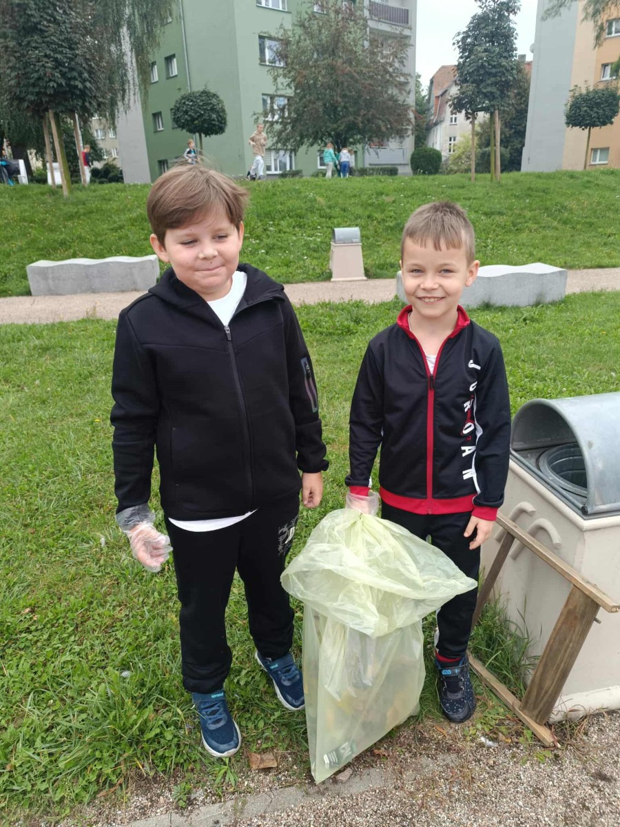 25 Września 202519 września, uczniowie klasy 2a, 2b i 3a wzięli udział w corocznej akcji "Sprzątanie Świata". Z zapałem i determinacją przystąpili do zadania, aby przywrócić blask i czystość pobliskiemu placowi zabaw. Wyposażeni w rękawiczki i worki na śmieci, z entuzjazmem zbierali papiery, butelki, puszki i inne odpady, które zanieczyszczały teren. Akcja była nie tylko okazją do zadbania o wspólne dobro, ale także do nauki. Nauczyciele na bieżąco wyjaśniali dzieciom, jak ważna jest segregacja śmieci i dlaczego dbanie o środowisko jest tak istotne. Akcja "Sprzątanie Świata" pokazała, że nawet najmłodsi mogą mieć ogromny wpływ na otoczenie. Dzięki ich zaangażowaniu, plac zabaw znów stał się bezpiecznym i czystym miejscem do zabawy dla wszystkich mieszkańców. Działania te nie tylko przyczyniły się do poprawy stanu środowiska, ale także zaszczepiły w dzieciach poczucie odpowiedzialności i wrażliwość ekologiczną.